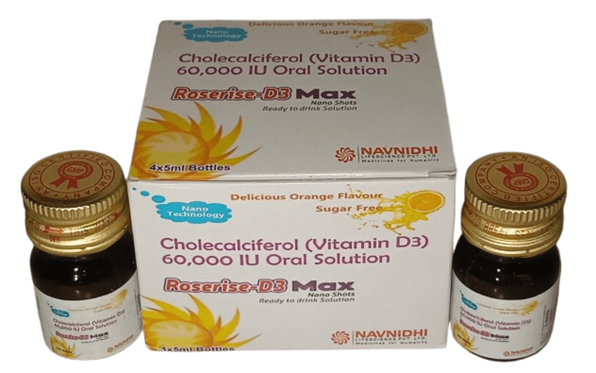 Vitamin D3 60000 IU oral solution, Cholecalciferol 60000 IU, Vitamin D3 nano shot, RoseRise D3 Max, Sugar-free vitamin D3 oral solution, Vitamin D3 60000 IU orange flavour, Nano technology vitamin D supplement, Best vitamin D3 for bone health, Vitamin D deficiency supplement, Weekly vitamin D3 oral shot